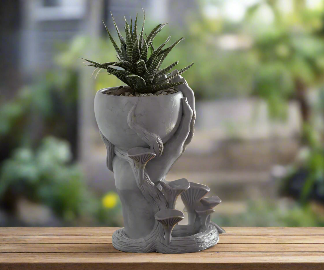 Step into a world of fantasy with this Mushroom Hand Vase, a truly unique and mesmerizing decorative piece. Designed to appear as though a mystical hand is gently cradling a blooming mushroom, this vase is both surreal and artistic. Whether used to hold flowers, plants, or simply as a conversation piece, it adds a touch of whimsy and imagination to your decor. A perfect gift for fantasy lovers, this one-of-a-kind vase is ideal for fairy-tale-inspired home settings.