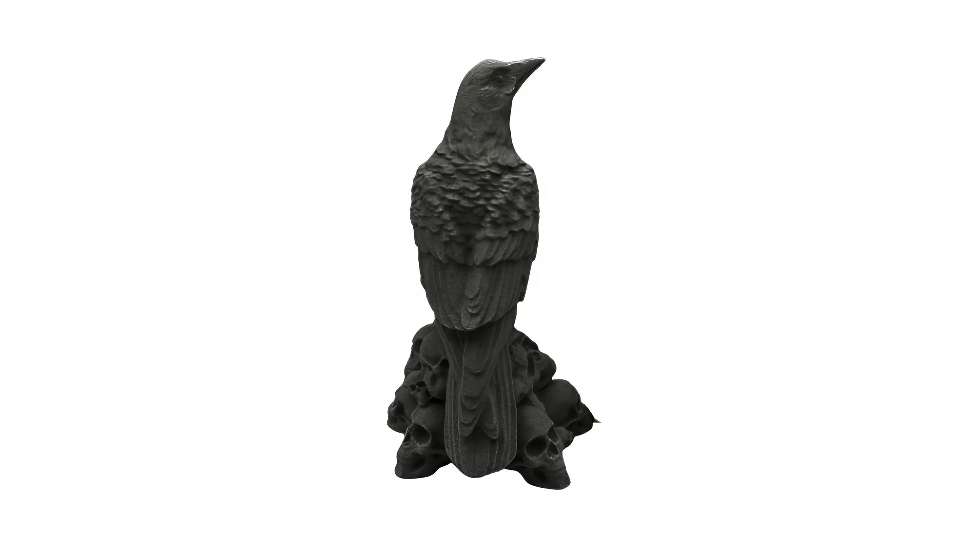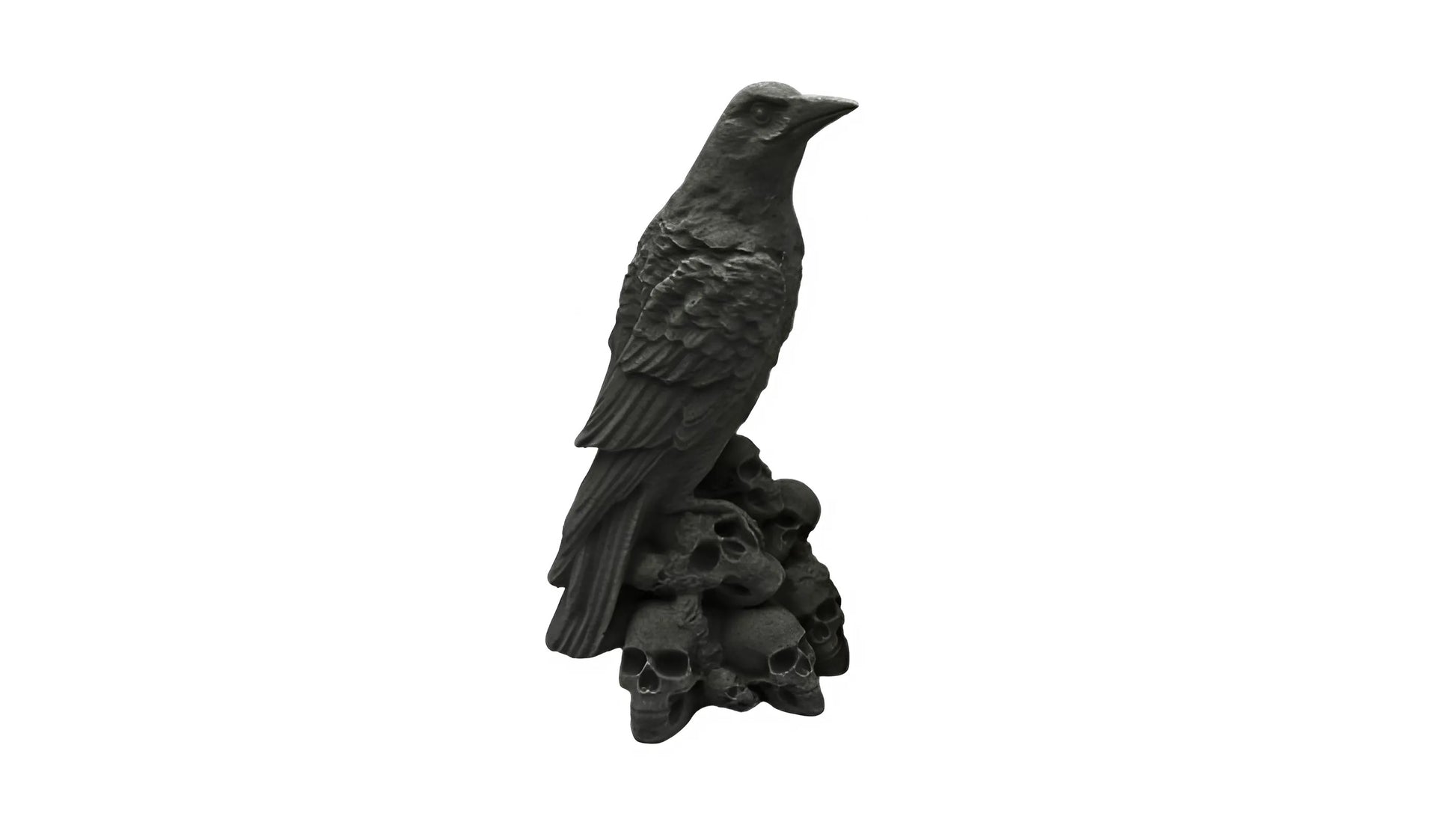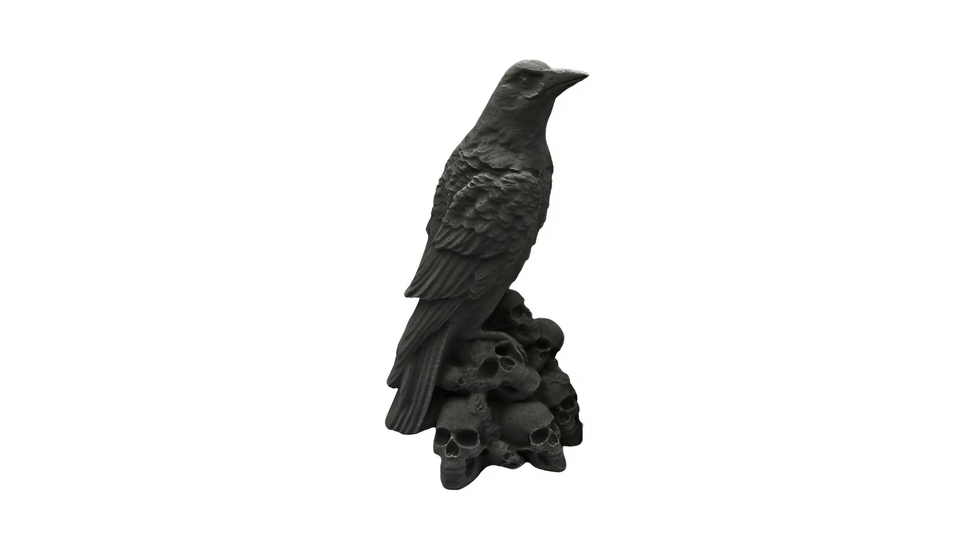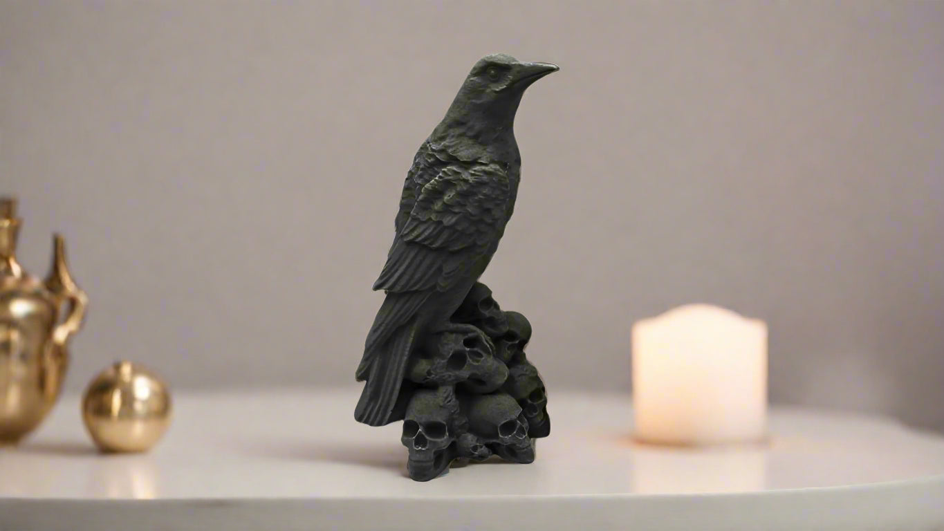 A gothic centerpiece featuring a wise raven perched atop a throne of skulls. Perfect for dark fantasy themes.