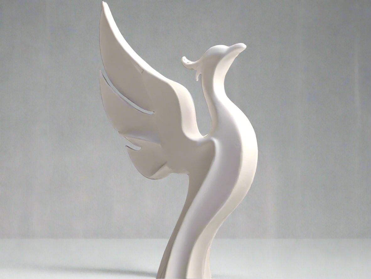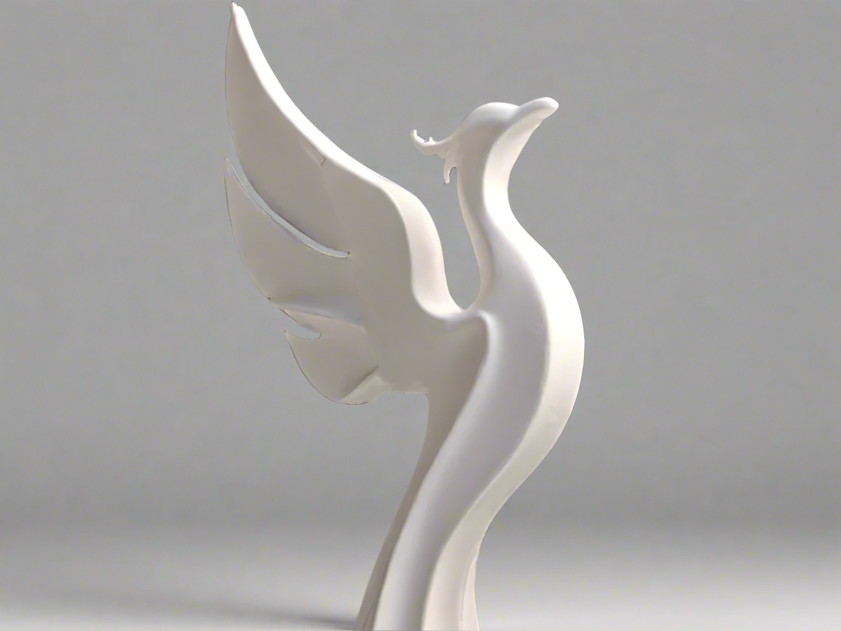 A phoenix sculpture that embodies the idea of rebirth through vibrant flames and modern design.