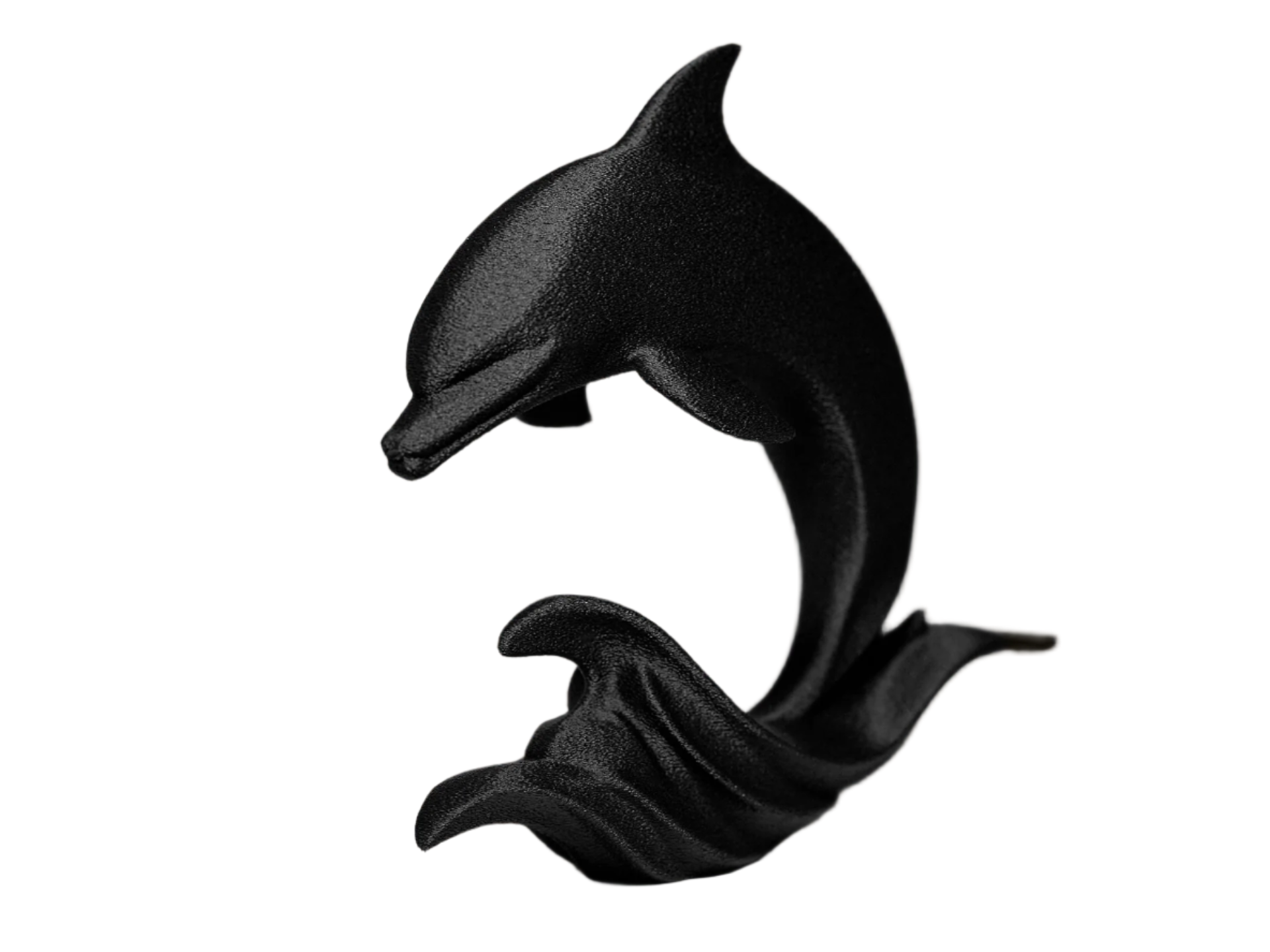 A lively dolphin sculpture that captures the joyful spirit of the ocean.