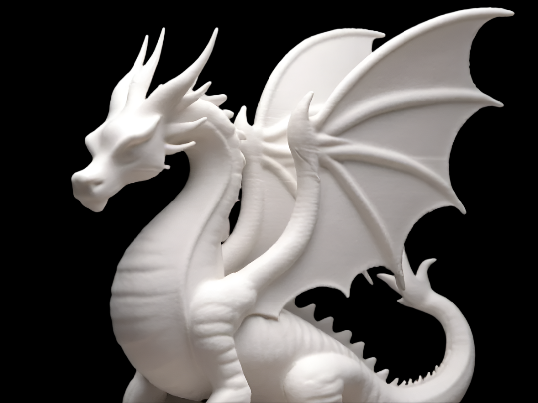 A majestic dragon sculpture that watches over with modern, guardian-like presence.