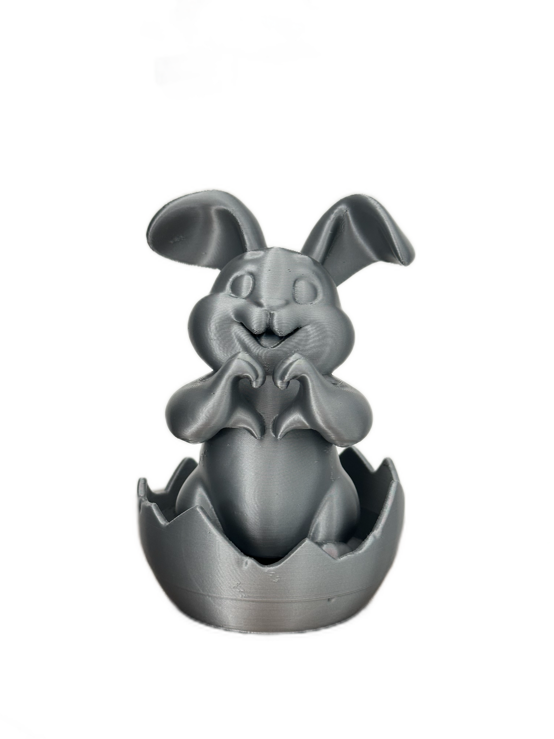 Charming Grey Bunny Statue in Cracked Egg