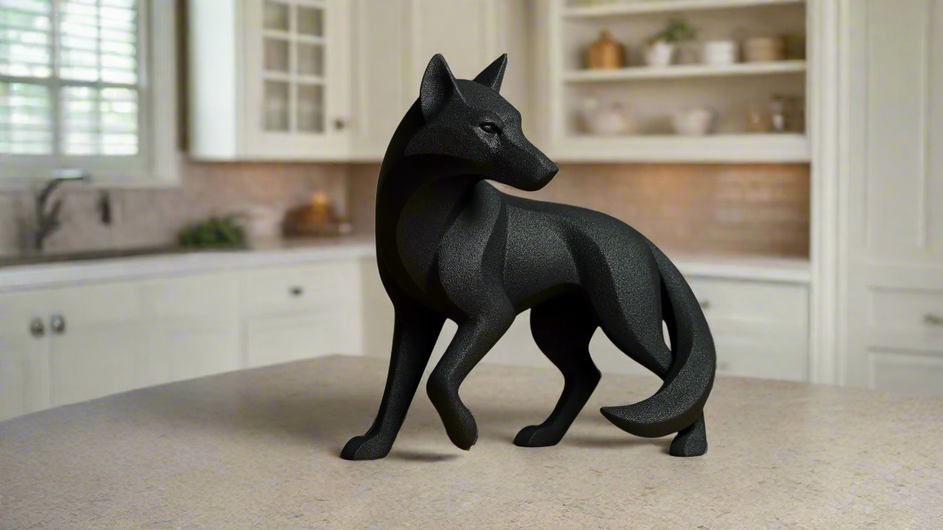 A bold 3D printed wolf captured mid-howl, ideal for nature-inspired and dramatic displays.