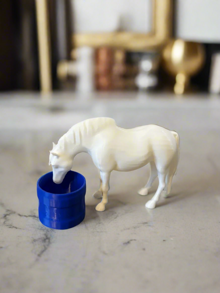 Capture pastoral charm with this horse drinking from barrel sculpture. The quaint scene evokes country life, perfect for farmhouse décor. Printed in robust resin, it adds character to coffee tables or entryway consoles.