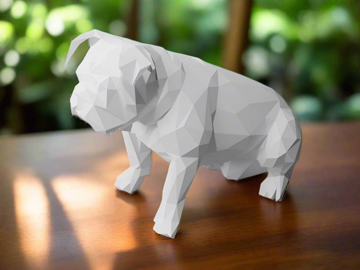 Expertly crafted with a modern, low poly design, this bulldog sculpture adds a unique touch to any space. Made with quality materials, it's a durable and stylish addition to your decor. Perfect for dog lovers or anyone looking for a striking accent piece.