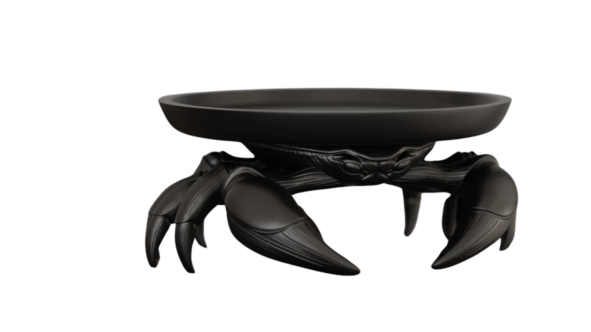 A unique 3D printed tray stand designed as a crab claw, blending functionality with creative décor.