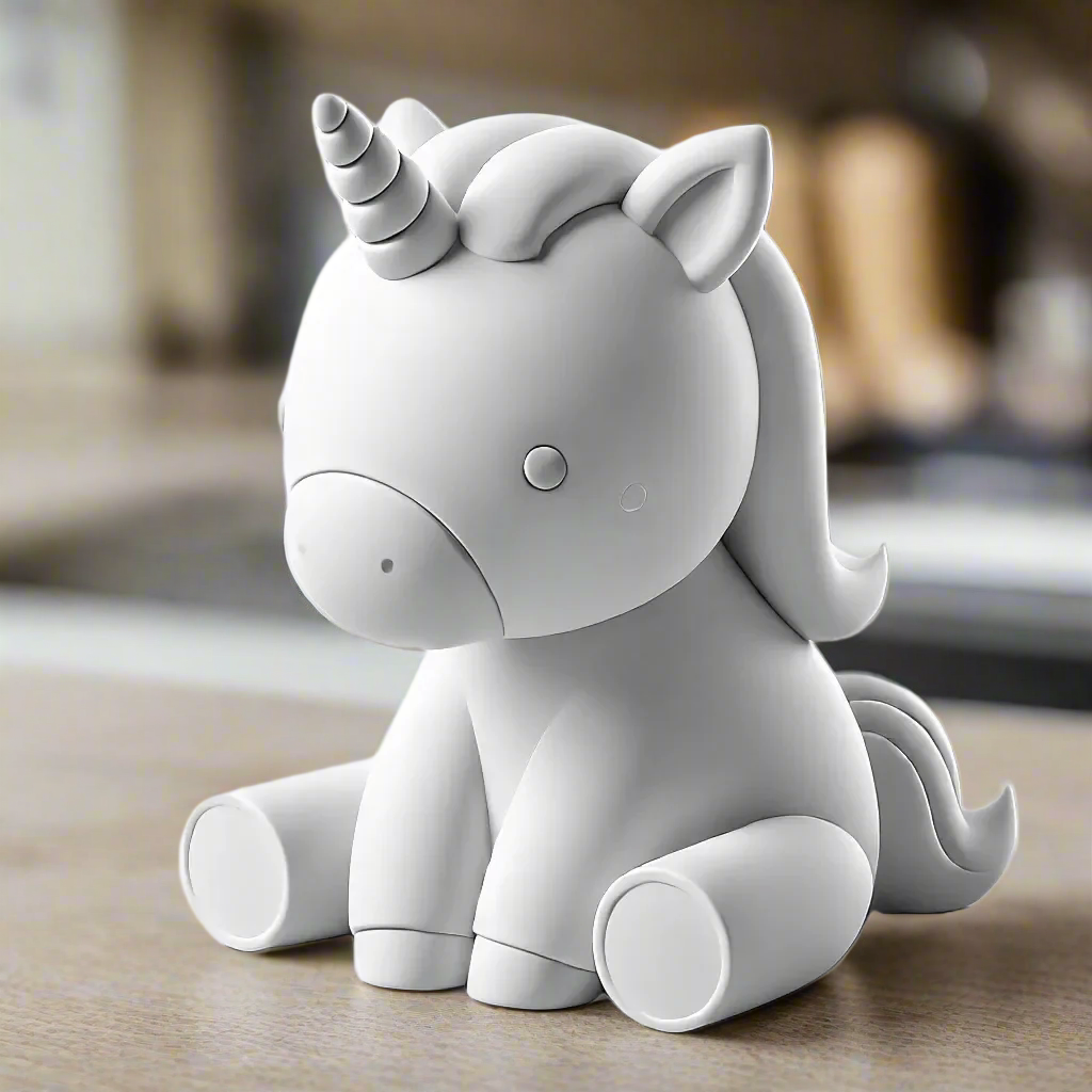 An adorable 3D printed unicorn model perfect for magical décor and whimsical displays.