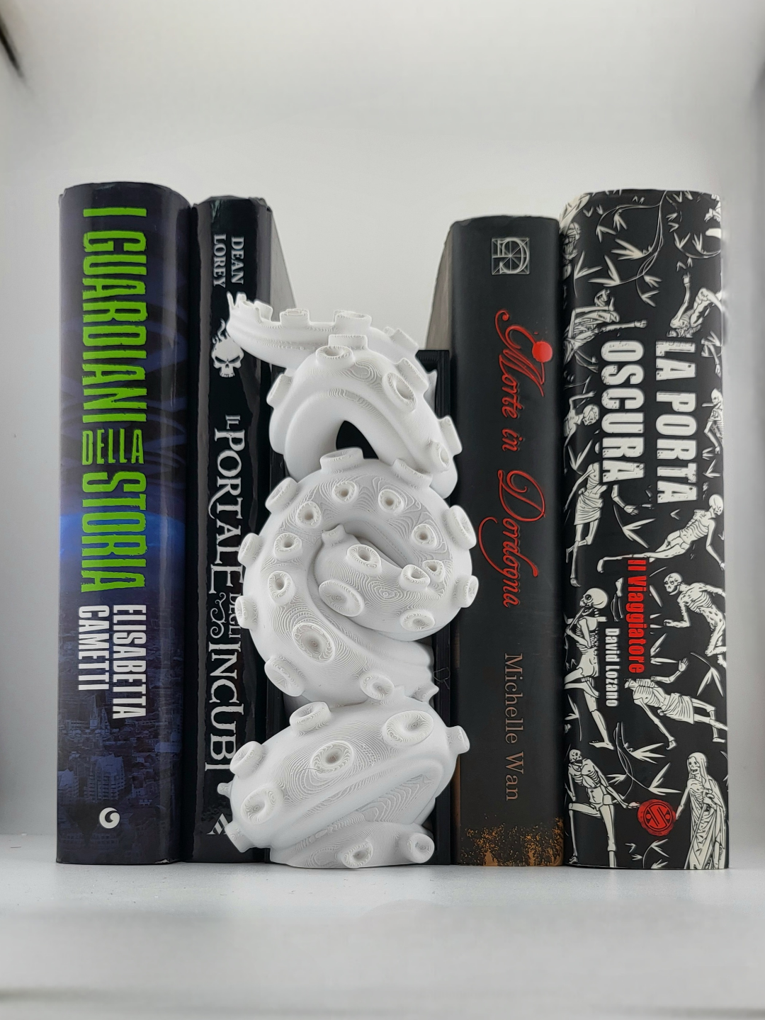A futuristic 3D printed book nook with tentacle designs perfect for sci fi and space themed bookshelf accents.