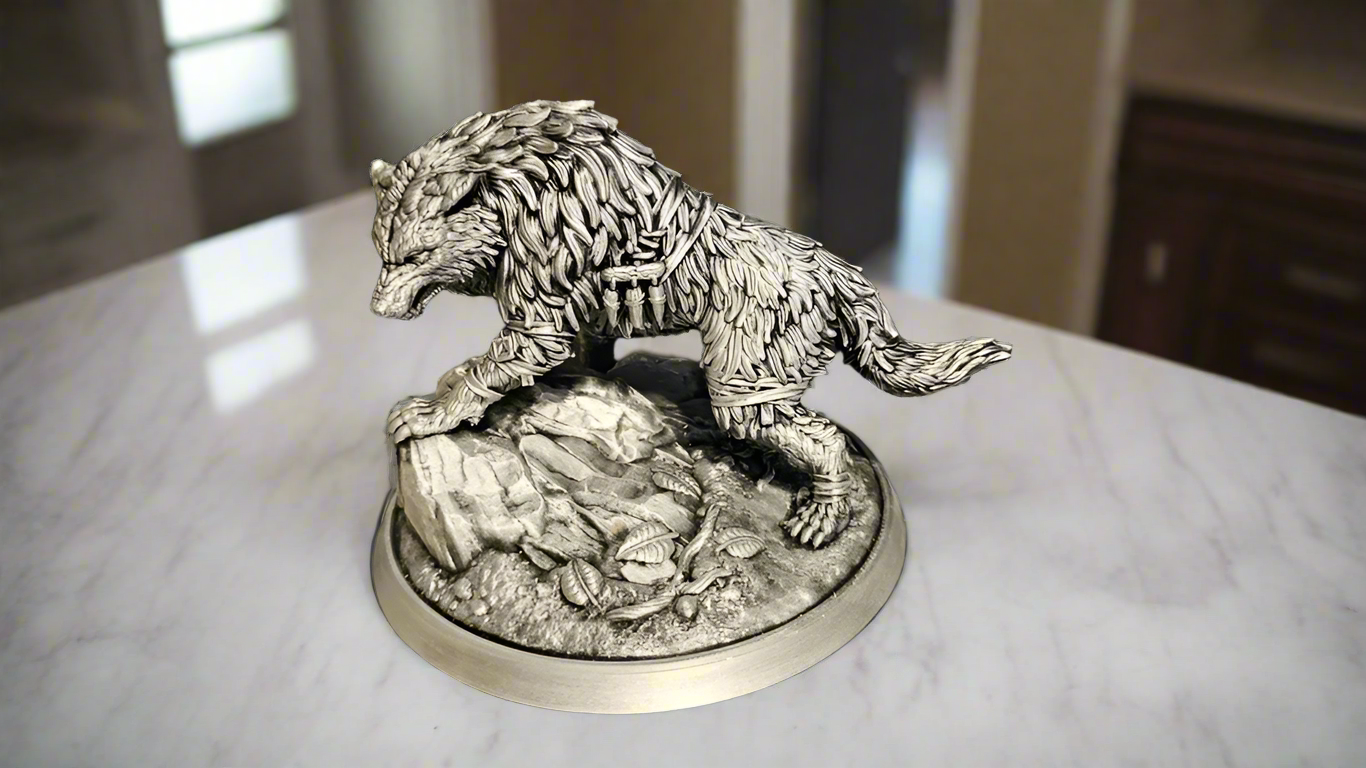 Realistic Wolf Sculpture on Rocks: Nature Inspired Decor