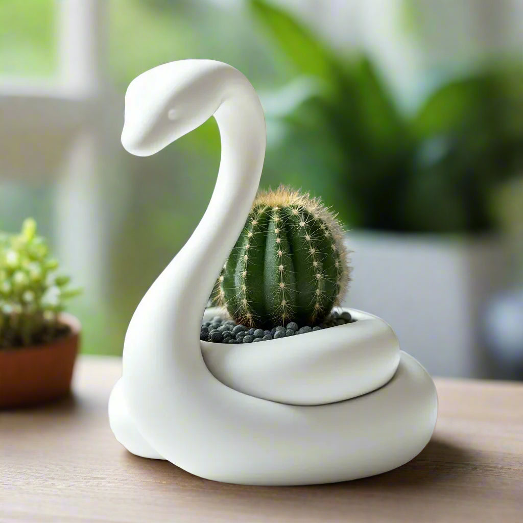 A serpentine-inspired flower pot that adds a hint of exotic flair to your plant collection.